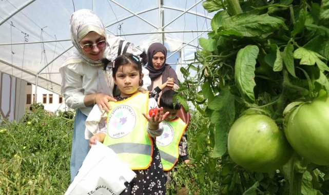 Bayburt'ta lise öğrencilerinin oluşturduğu serada özel eğitim öğrencileri sebze hasadı yaptı. Öğretmenleri gözetiminde organik domates, biber ve fasulye toplayan öğrenciler, keyifli bir gün geçirdi.