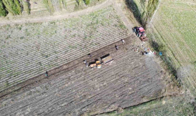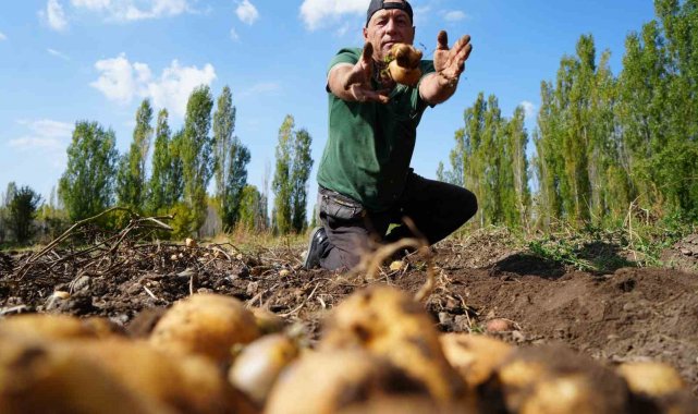 Ailesiyle birlikte el birliğiyle yapılan hasatta patatesin tarladan sofraya uzanan zahmetli yolculuğu sona ererken, yüksek verim hem üreticiyi hem de köy halkını sevindirdi.