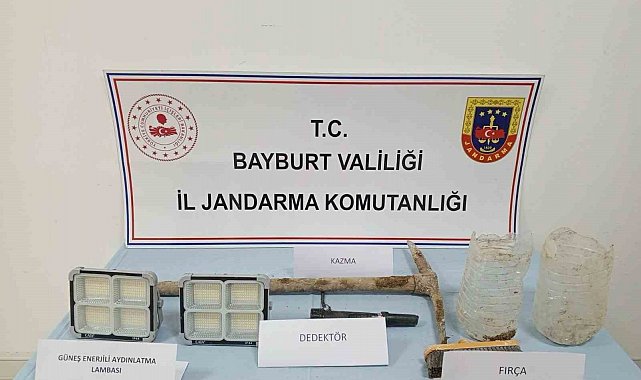 Bayburt Cumhuriyet Başsavcılığı koordinesinde, İl Jandarma Komutanlığınca izinsiz kazı suçlarının önlenmesine yönelik yürütülen çalışmalar kapsamında sit alanında kaçak kazı yapıldığı bilgisine ulaşıldı. Bunun üzerine bölgede çalışma başlatan ekipler, düzenlenen operasyonda 3 şüpheliyi, 1 dedektör ve çok sayıda kazı malzemesiyle birlikte suçüstü yakaladı.