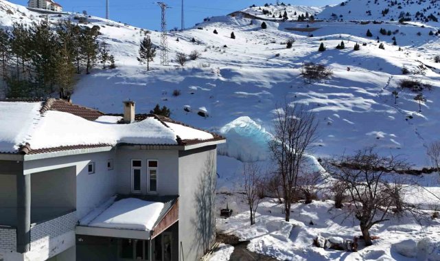 Bayburt'ta soğuktan çatlayan borudan sızan su damlaya damlaya buzdan kale oldu