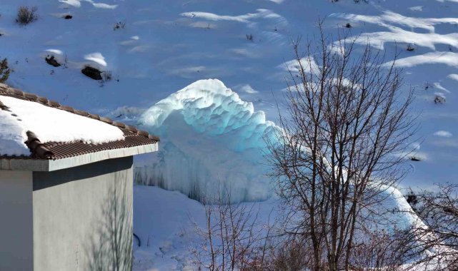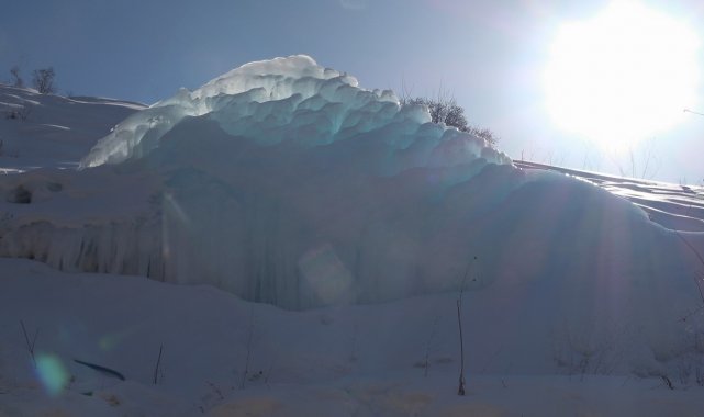 Oluşan buz kütlesi havanın ne denli soğuk olduğunu gözler önüne seriyor