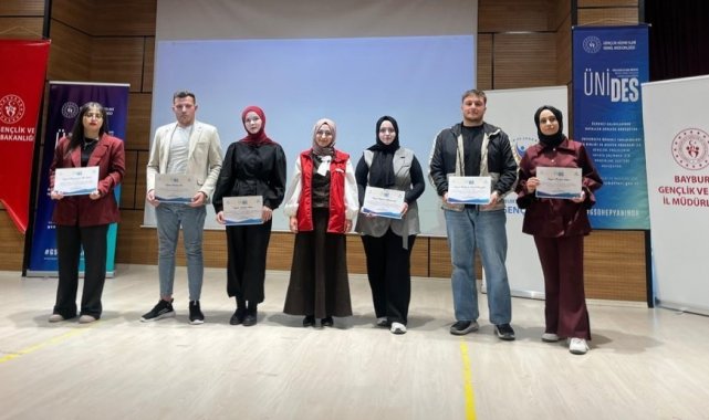 Gençlik Hizmetleri Genel Müdürlüğü tarafından yürütülen Üniversite Öğrenci Toplulukları İş Birliği ve Destek Programı (ÜNİDES) çerçevesinde ikinci, üçüncü ve dördüncü dönemlerde destek almaya hak kazanan öğrenci toplulukları üyelerine yönelik Bayburt'ta sertifika teslim programı düzenlendi.