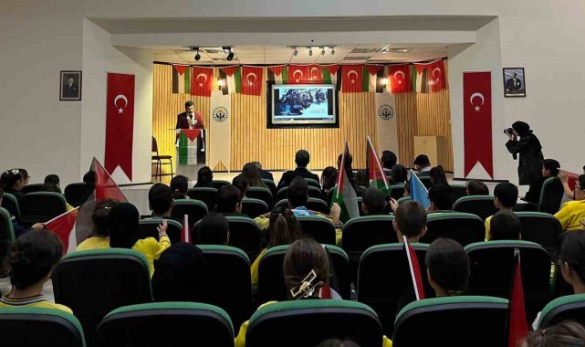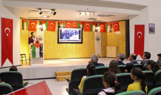 Şehitler Ortaokulu'nda düzenlenen etkinlik kapsamında Din Kültürü ve Ahlak Bilgisi Öğretmeni Abdullah Dursun tarafından 'Gazze'de Çocuk Olmak' konulu konferans verildi. Programa katılan İl Millî Eğitim Müdürü Ömer Faruk Kahraman, öğrencilerin ve öğretmenlerin çabasına ortak olarak, 'Bizim Şarkımız' adlı şiiri okudu, Filistin halkına desteğini dile getirdi.