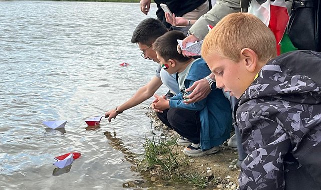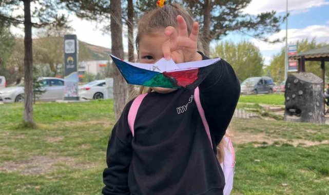 Bayburt'ta düzenlenen 'Gönlümüz Filistin'le, Gemilerimiz Çoruh'ta' etkinliğinde minikler, Küresel Sumud Filosu'na destek amacıyla boyadıkları kağıt gemileri Çoruh Nehri'ne bıraktı.