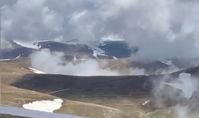 Bayburt'un Aydıntepe ilçesine bağlı 2 bin 300 rakımlı Dumlu köyünün yükseklerinde karlar yeni yeni erimeye başladı. Dağ köyü, sisle kaplandı.