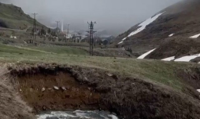 Bayburt'un 2 bin 300 rakımlı Dumlu köyü yaylasında karlar erimeye başladı