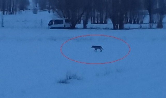 Karla kaplı arazide dolaşan 3 kurt, beldede yaşayan bir vatandaş tarafından fark edildi. Cep telefonu kamerasına yansıya görüntülerde, önde ilerleyen kurdun adeta gözcülük yaptığı, diğer iki kurdun ise belirli bir mesafeyi koruyarak arkasından hareket ettiği görülüyor.
