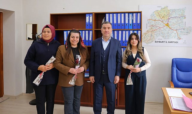 Bayburt Valisi Mustafa Eldivan, Valiliğe bağlı birimlerde görev yapan kadın çalışanlarla bir araya gelerek 8 Mart Dünya Kadınlar Günü'nü kutladı.