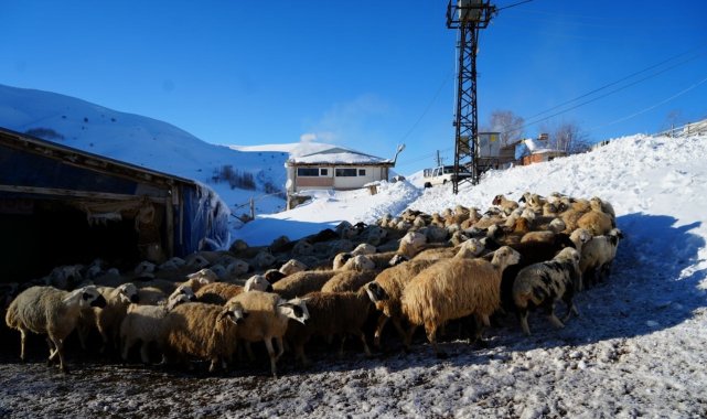 Bayburt merkeze 42 kilometre uzaklıktaki Başçımağıl köyünde yaşayan Fikri Telli, eksi 25 dereceyi bulan soğuk havaya rağmen 140 küçükbaş hayvanına gözü gibi bakıyor.