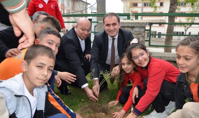 Toplantı sonrası Bayındır Kaymakamı Murat Mete, Eğitime Destek Platformu İzmir İl Başkanı Gökhan Temur ve diğer katılımcılar, spor salonu bahçesinde çocuklarla birlikte fidan diktiler.