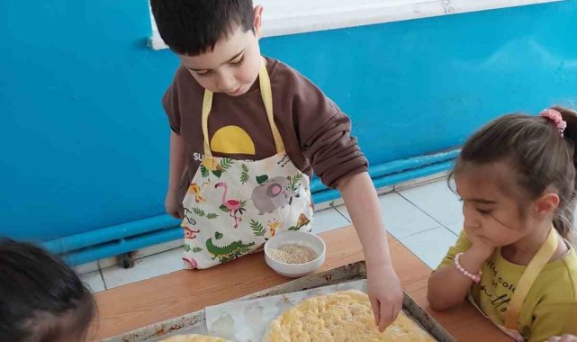 Öğretmenler eşliğinde gerçekleştirilen etkinlikte minik öğrenciler, Ramazan ayının geleneksel lezzetlerinden olan pidenin yapım aşamalarını uygulamalı olarak öğrendi. Hamur yoğurma, şekil verme ve üzerine susam serpmek gibi aşamalara katılan öğrenciler hem eğlendi hem de keyifli vakit geçirdi. Etkinlik kapsamında çocuklara Ramazan ayının paylaşma ve dayanışma ayı olduğu anlatılırken, geleneksel değerlerin küçük yaşta benimsetilmesinin önemine dikkat çekildi. Öğrencilerin büyük bir heyecanla hazırladığı pideler, pişirme aşamasının ardından afiyetle tüketildi.