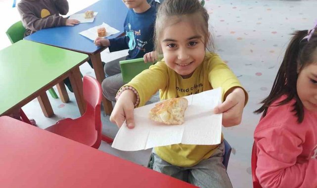 İzmir'in Bayındır ilçesinde Müzekke Susamcıoğlu Anaokulu öğrencileri, Ramazan ayı dolayısıyla düzenlenen etkinlikte kendi ramazan pidelerini yapmanın heyecanını yaşadı.