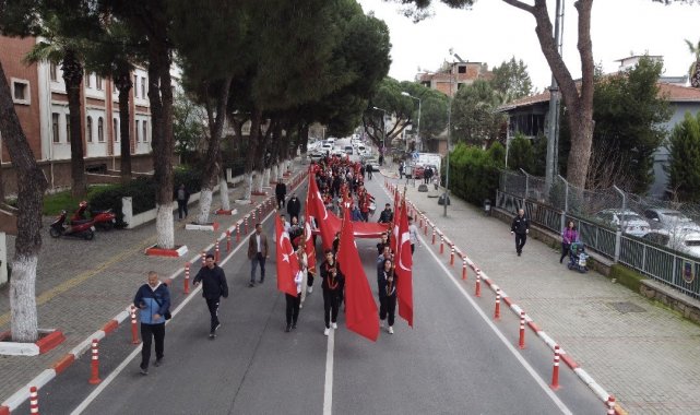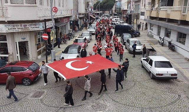 Bayındır'da öğrencilerden bayrak yürüyüşü