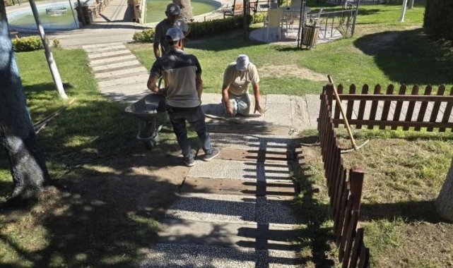 Bayırköy Belde Belediyesi, Atatürk Parkı'nda zamanla deforme olan yürüyüş yollarında bakım ve onarım çalışmalarını sürdürüyor.