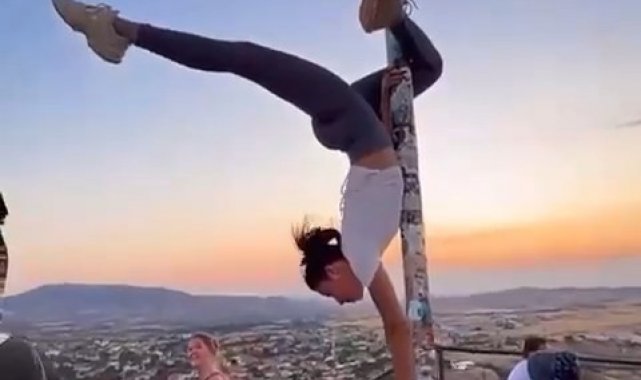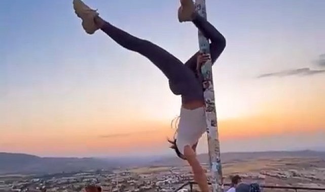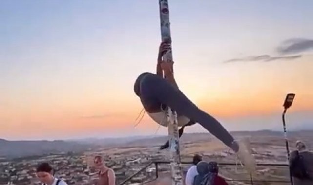 UNESCO Dünya Kültürel ve Doğal Mirası Listesi'nde yer alan Kapadokya bölgesinin önemli destinasyonları arasında yer alan Uçhisar Kalesi'nin zirvesinde yabancı bir turist, Türk bayrağı direğine uygunsuz hareketlerde bulundu.