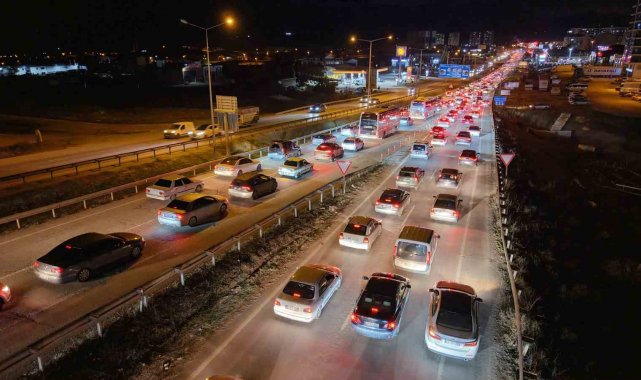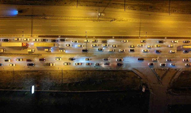 Kilometrelerce uzayan yoğunlukta araçların tampon tampona ilerlediği anlar havadan görüntülendi. Polis ve jandarma ekipleri şehirler arası kara yollarında denetimlerini artırdı. Sürücülerin güvenli şekilde ilerleyebilmesi için ekiplerin sahadaki çalışmaları sürüyor.