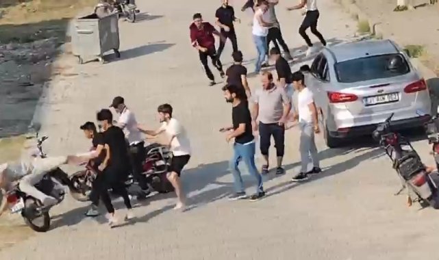 Hatay'da iki grup arasında sokak ortasında çıkan kavgada yumruklar ve tekmeler havada uçuştu. Adeta savaş ortamına dönen kavga anbean kameraya yansıdı.