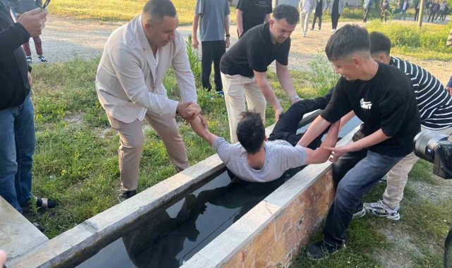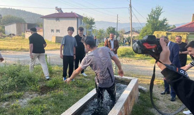 Bolu'nun Mudurnu ilçesine bağlı Munduşlar köyünde bayram namazına gelmeyen bir genç, yatağından kaldırılarak buz gibi suyla dolu oluğa yatırıldı.