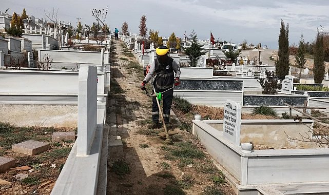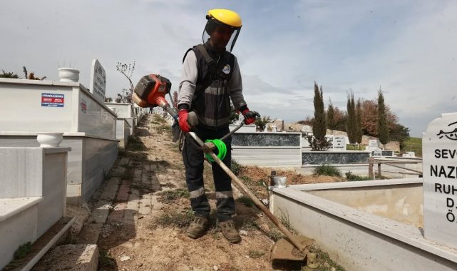 Bayram öncesinde mezarlıklarda temizlik çalışması