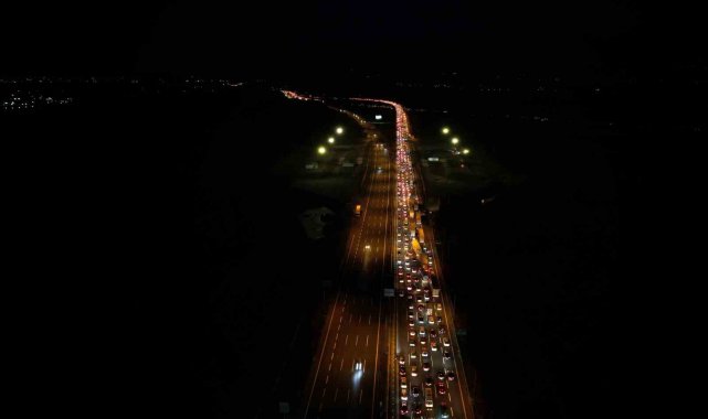 Kurban Bayramı tatili sebebi ile memleketlerine gitmek için erkenden yola çıkan tatilciler, Sakarya'da Kuzey Marmara Otoyolu ile Anadolu Otoyolu'nun kesiştiği noktada uzun araç kuyrukları oluştu. Otoyolların kesişim noktasında duran trafik havadan görüntülendi.