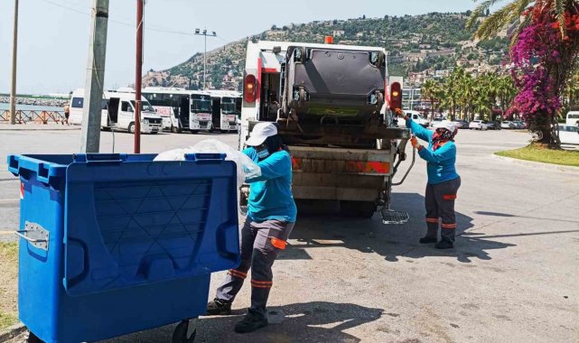 Alanya Belediyesi Temizlik İşleri Müdürlüğü ekipleri, Arefe günü ve 4 günlük bayram tatilinde 4 bin 552 ton evsel, 322 ton 630 kilogram ambalaj atığı olmak üzere toplamda 4 bin 874 ton 630 kilogram atık topladı.
