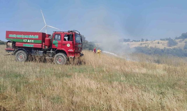 Çanakkale'nin Bayramiç ilçesinde tarım arazisinde çıkan yangın Orman Bölge Müdürlüğü ekiplerinin müdahalesiyle kontrol altına alındı.