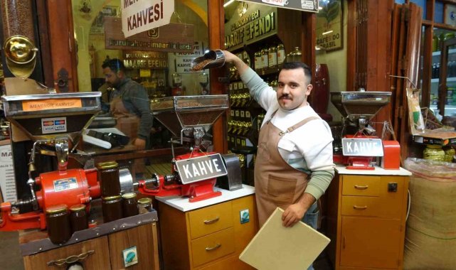 Tarihi Bakırcılar Çarşısı'nda kahve çekimi ve satışı yapan Berat Aydın, Türk ve menengiç kahvesinin kentte köklü bir kültüre sahip olduğunu belirtti.