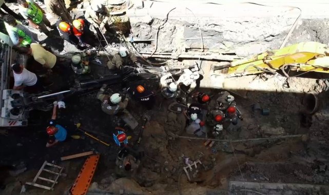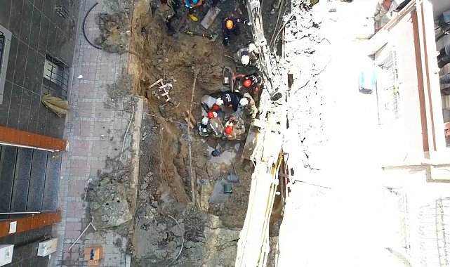 Öte yandan göçük sonrası çalışmanın yapıldığı cadde şerit çekilerek yaya ve araç trafiğine kapatıldı.