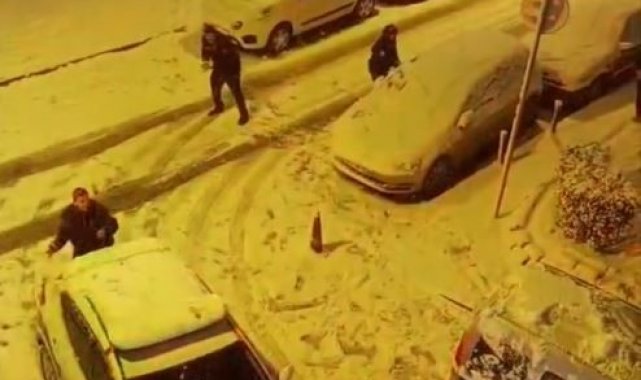 İstanbul Bayrampaşa'da gece saatlerinde etkili olan kar yağışında yolda kalan polis aracını vatandaşlar iterek kurtardı. Sonrasında vatandaşlar ve polis arasında kartopu oynadığı o anlar renkli görüntülere sahne oldu.