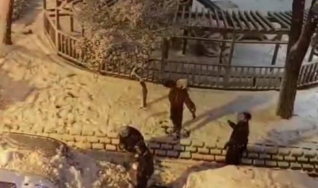 Öte yandan Bayrampaşa'da Sokak ortasında vatandaş ve polis memurlarının kartopu oynadığı anlar renkli görüntülere sahne oldu.