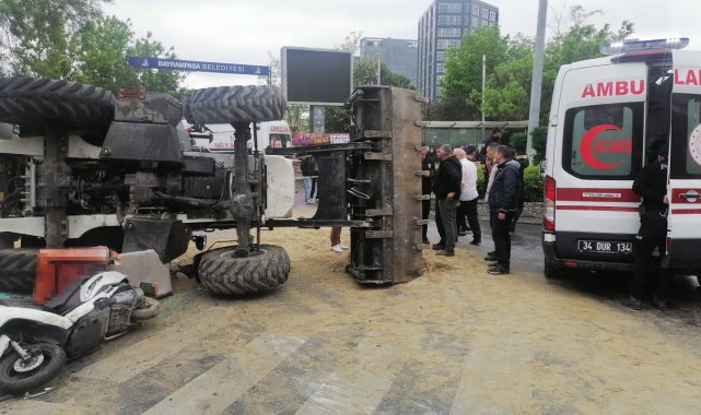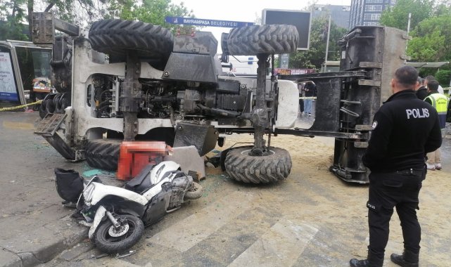 Kaza, saat 11.30 sıralarında Bayrampaşa Kocatepe Mahallesi Şehir Parkı Caddesi'nde meydana geldi. İddiaya göre, cadde üzerinde seyir halindeki Sadullah Özdağ isimli operatörün yönetimindeki 25 0024 0203 plakalı kepçe yokuş aşağı inerken yağmur nedeniyle kaydı. Kepçe park halindeki 2 araca ve önünde Mazlum Çaçur yönetiminde seyir halinde olan 34 HYP 112 plakalı motosiklete çarptı. Çarpmanın etkisiyle motosiklet savrulurken, kepçe ise yan yatarak durabildi. Park halindeki araçlardan birinin lastiği yırtılırken, diğeri ise aydınlatma direğine çarptı. Kazada kepçe operatörü ve motosiklet sürücüsü yaralandı. İhbar üzerine olay yerine polis itfaiye ve sağlık ekipleri sevk edildi. Sağlık ekiplerinin ilk müdahalesinin ardından yaralılar ambulanslarla hastaneye kaldırıldı. Kaza nedeniyle yerlere kum atılarak emniyet şeridi ile çevrede geniş güvenlik önlemleri alındı. Trafik, polis ekipleri tarafından bir süre kontrollü olarak sağlandı. Araçlar çekici yardımıyla yoldan kaldırılınca trafik normale döndü. Öte yandan, Bayrampaşa Kocatepe Mahalle Muhtarı Murat Aytekin bu cadde üzerinde sürekli kazaların yaşandığını dile getirip İBB'den çözüm beklediğini ifade etti. Kaza anı ise saniye saniye güvenlik kamerasına yansıdı.
