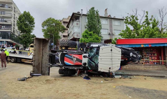 Bayrampaşa'da yokuş inerken yağan yağmurdan dolayı kayan bir kepçe, sürücüsünün kontrolünden çıkarak park halindeki 2 araca ve seyir halindeki 1 motosiklete çarpıp yan yattı. Kazada yaralan 2 kişi ambulanslarla hastaneye kaldırıldı. Kaza anı güvenlik kamerasına saniye saniye yansıdı.