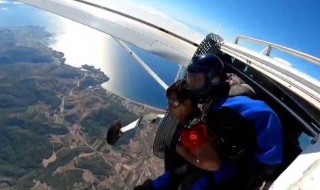 Bedensel ve görme engelli sporcudan nefes kesen paraşüt atlayışı