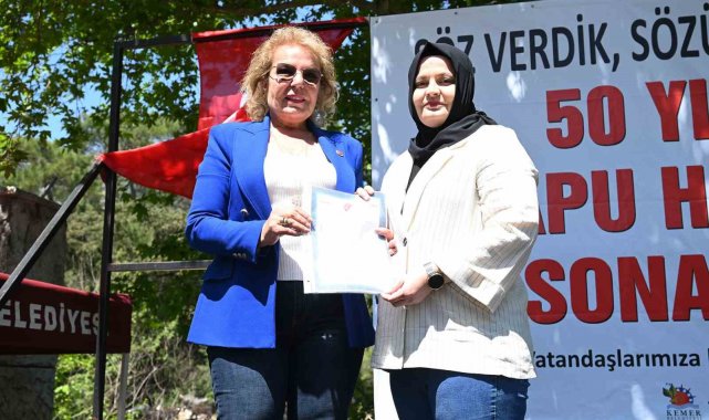 Kemer'in Beldibi Mahallesi'nde yaşayan vatandaşların 50 yıllık tapu hasreti sona erdi. Kemer Belediye Başkanı Necati Topaloğlu, 50 yıl sonra 800 dönümlük alandaki hak sahiplerine düzenlenen törenle tapularını dağıttı.