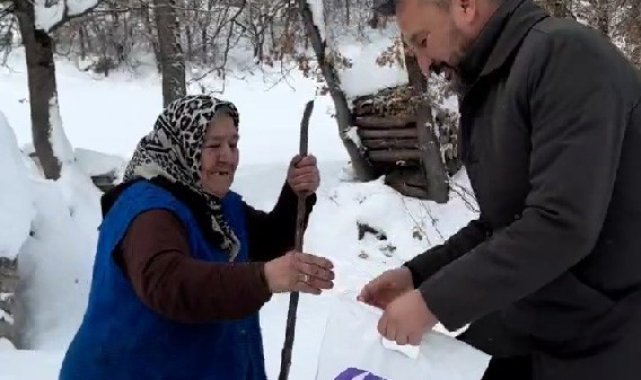 Başkan Cıva, daha sonra gurbetçinin annesine gönderilen poşeti teslim etti.