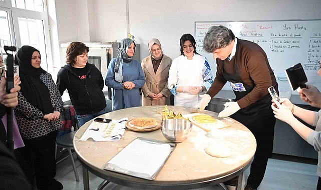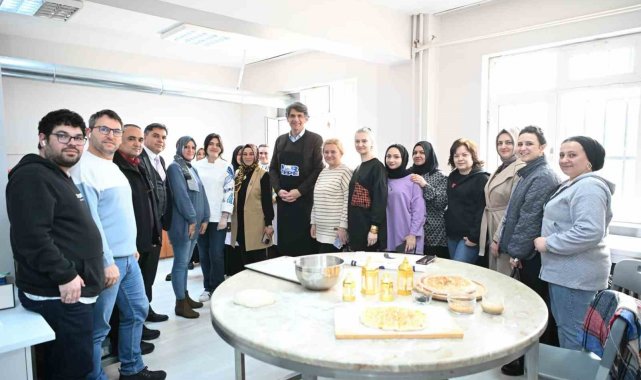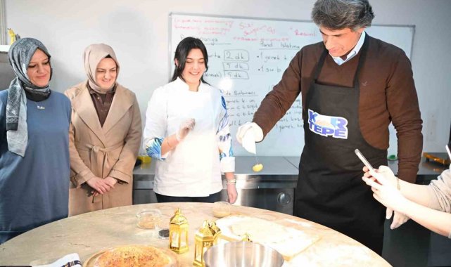 Kartepe Belediye Başkanı Mustafa Kocaman, Kartepe Halk Eğitim Müdürlüğü'ne gerçekleştirdiği ziyarette kursiyerlerle birlikte Ramazan pidesi yaptı.