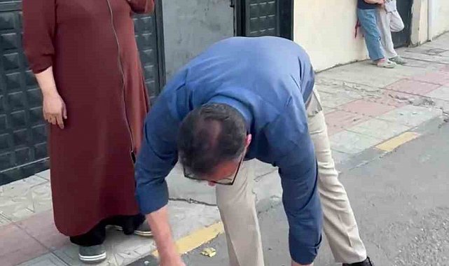 Belediye başkanı sokağı süpüren kadının elinden süpürgeyi alıp kendi süpürdü