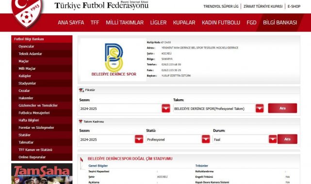 TFF 2. Lig Kırmızı Grup'ta mücadele eden Belediye Derincespor'un ekonomik sorunları nedeniyle gündeme gelen bölgesel amatör ligde bulunan Gebzespor'a satılması konusunda Türkiye Futbol Federasyonu (TFF) resmi internet sitesindeki güncelleme kafaları karıştırdı. TFF sitesinde Belediye Derincespor'un kulüp başkanı Yusuf İzzettin Öztürk olarak revize edildi. Kent kamuoyunda satışın tamamlandığı yönündeki iddialara her iki kulüp başkanı da resmiyette değişiklik yapılsa da bazı pürüzlerin henüz aşılmadığını, herhangi bir devir teslim olmadığını, mahremiyeti açısından kamuoyuyla paylaşmadıkları başlıklarda anlaşma sağlanamazsa kulübün geri iade yapılacağını söyledi.