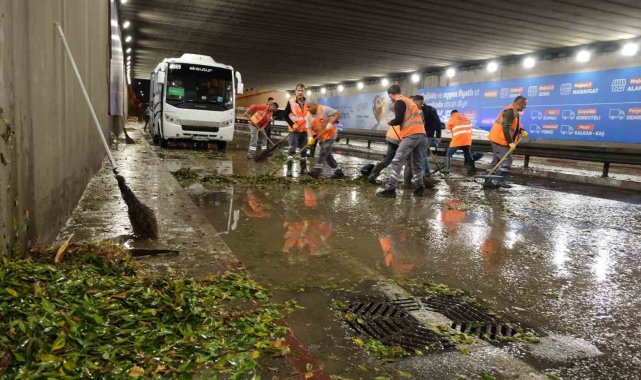 Aniden etkili olan sağanak yağışın ardından Antalya Büyükşehir Belediyesi ASAT Genel Müdürlüğü ekipleri de kısa sürede sahaya indi. Kentin farklı noktalarından gelen ihbarlara hızla müdahale eden ekipler, ana arterler başta olmak üzere dolu yağışı nedeniyle dökülen ve yağmur sularının taşıdığı yaprakların tıkadığı mazgalları temizlendi. Ekiplerinin en yoğun çalışması ise alt geçitlerde oldu. ASAT ekipleri ile Çevre Koruma ve Kontrol Dairesi Başkanlığı ekipleri aşırı yağış nedeniyle polis tarafından trafiğe kapatılan Falez Alt Geçidi'nin trafiğe açılması için temizlik çalışması yaptı. Yoğun bir çalışmayla hızla tamamlanan temizliğin ardından alt geçit kısa süre sonra trafiğe açıldı.