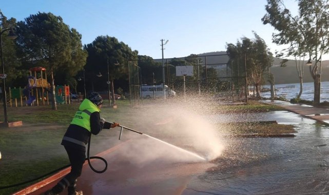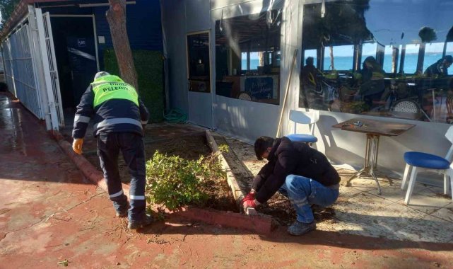Aydın'ın Didim ilçesinde saha çalışmalarını sürdüren belediye ekipleri, ayrıca fırtınadan zarar gören yerlerde de onarım çalışması gerçekleştirdi.