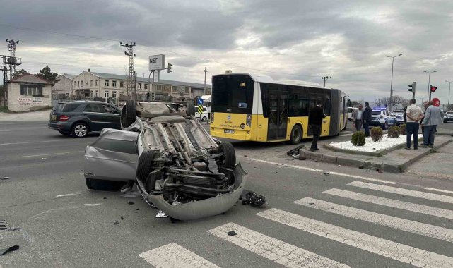 Belediye otobüsü ile otomobil çarpıştı: 9 yaralı
