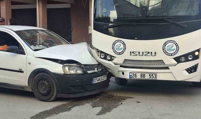 Eskişehir'de belediye otobüsü ve hafif ticari aracın çarpışması sonucu meydana gelen trafik kazası maddi hasarla atlatıldı.