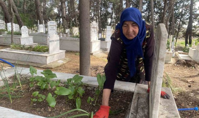 Belediyeden izin alıp 20 yıldır her gün mezarlığa gelerek temizlik yapıyor