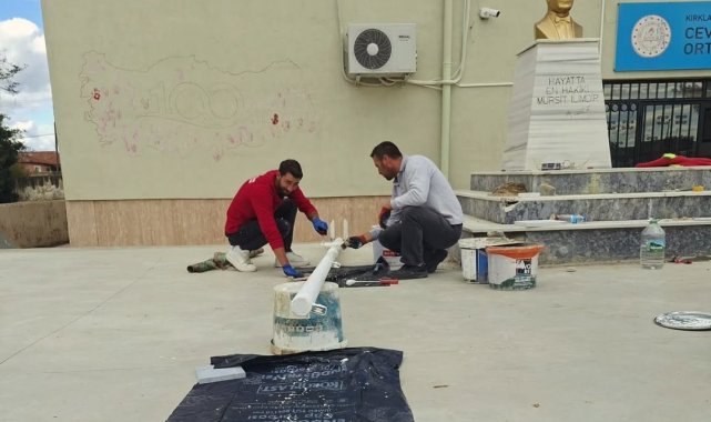 Belediye ekipleri tarafından bayrak direkleri, futbol ve voleybol direkleri, çöp kovaları ve oturma grupları yenilenirken, okul bahçelerinde genel çevre düzenlemeleri de tamamlandı.