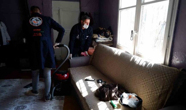 Erzurum Büyükşehir Belediyesi ekipleri, Ramazan Bayramı öncesi, özellikle tek başına yaşayan ve ihtiyaçlarını kendileri gideremeyen vatandaşların evlerine bayram temizliğine gidiyor.