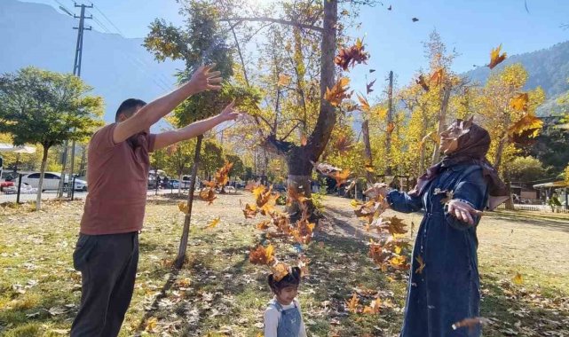 Kasım ayının en gözde doğa rotalarından biri olan Belemedik Tabiat Parkı, yeşil ve sarının bin bir tonunu barındıran çınar ağaçlarıyla adeta bir tabloyu andırdı.