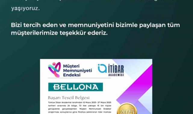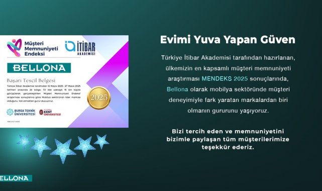 12 - 27 Mayıs 2025 tarihleri arasında Türkiye İtibar Akademisi tarafından gerçekleştirilen Müşteri Memnuniyeti Araştırması; Bellona'nın sektördeki güçlü konumunu bir kez daha tescilledi. Bilgisayar destekli telefon anketi yöntemiyle yapılan araştırmada; Bellona 72,1 puanlık memnuniyet skoru ile tüketicilerin güvenini kazanmaya devam etti. Araştırmada, Türkiye genelinde İstatistiki bölge birimleri sınıflandırmasına göre belirlenen 26 bölgeden, 72 ilde yaklaşık 15 bin kişiyle görüşüldü. Yüzde 93 güven düzeyinde yürütülen çalışmada, bölge, yaş, eğitim, ses grubu ve cinsiyet dağılımlarına göre hedeflenen kotalara ulaşıldı. Bellona Genel Müdürü Cüneyt Ocak yaptığı açıklamada; "Bellona olarak müşteri memnuniyetini her zaman önceliğimiz olarak gördük. Bu bakış açımızı, ürün kalitemizden satış sonrası hizmetlerimize kadar tüm süreçlerimize yansıtmaya özen gösteriyoruz. Elde ettiğimiz bu skor, müşterilerimizin markamıza duyduğu güvenin ve sadakatin en somut göstergesidir. Bizlere bu başarıyı sağlayan tüm çalışma arkadaşlarımıza, iş ortaklarımıza ve elbette bizi tercih eden değerli müşterilerimize teşekkür ediyorum. Müşteri memnuniyetini öncelikli hedefimiz olarak görmeye ve bu yolda yatırımlarımızı sürekli artırmaya devam edeceğiz" ifadelerini kullandı.