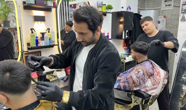 İşletme çalışanı Umut Sayar, "Sabahtan bu yana 25-30 tıraş oldu, bir o kadar daha randevumuz var. Sıfır hata ile hizmet vermeye çalışıyoruz yorgun olsak da. Kolay bir iş değil" dedi.
