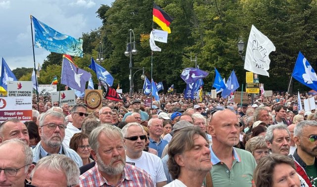 Almanya'nın başkenti Berlin'deki tarihi Brandenburg kapısı önünde düzenlenen gösteride binlerce kişi "Gazze'de Soykırımı Durdurun" çağrısı yaptı. Alman Sahra Wagenknecht İttifakı (BSW) Partisi Genel Başkanı Sahra Wagenknecht, "Her savaş bir suçtur. Kim Ukrayna'da ölen siviller için gözyaşı döküyor ama Gazze'deki ölümlere sessiz kalıyorsa onun savaş mağdurlarına karşı merhameti yoktur. Dürüst olan orada da sesini yükseltmeli" dedi.