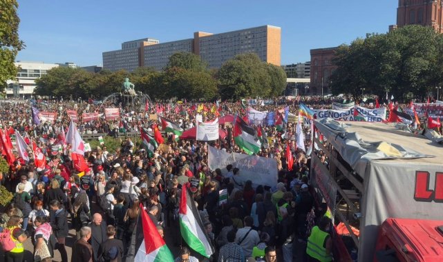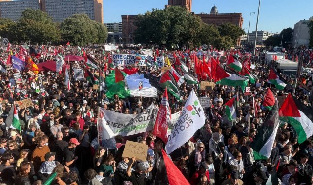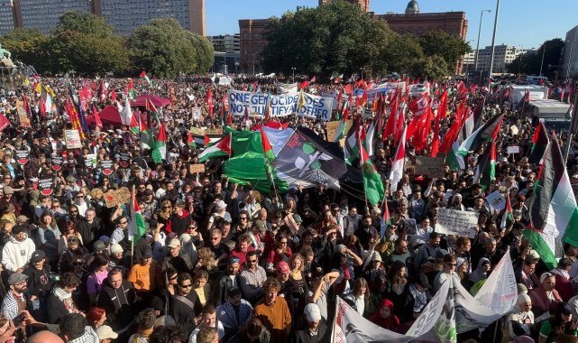 Almanya'nın başkenti Berlin, 7 Ekim 2023'ten bugüne kadar yapılan en büyük Filistin'e destek gösterisine sahne oldu. Yaklaşık 50 sivil toplum kuruluşu ve derneğin çağrısıyla Berlin'de bugüne kadar gerçekleştirilen en çok katılımlı Filistin'e destek gösterisi için on binlerce kişi önce Berlin Eyalet Başbakanlığı önündeki Neptün Çeşmesi'nin yakınlarında bir araya geldi. Her geçen dakika kalabalığın artması dolayısıyla planlanan yürüyüş bir saat gecikmeli olarak başladı.